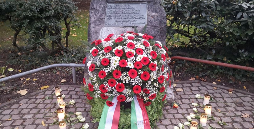 Das gemeinsame Ziel ist der Gedenkstein im Stadtpark. Dort legt Bürgermeister Claus Pommer mit Vertreterinnen und Vertretern aus Rat und Verwaltung gegen 16.45 Uhr den Kranz der Stadt Hilden nieder, musikalisch umrahmt von der  Musikschule.