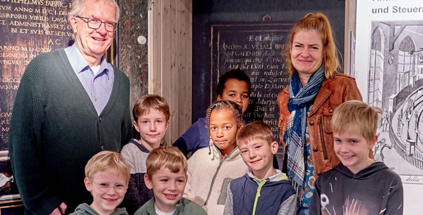 Mit Ausflügen in die Stadt, Texten aus Büchern, Besuchen von Museen (z.B. aktuell „Marie Colinet & Wilhelm Fabry – Hebamme & Chirurg im Einsatz für das Leben“ im Stadtmuseum, Foto oben mit Leiterin Sandra Abend und Thomas Bernhardt von der Geschichtswerkstatt) oder des Stadtarchivs erhalten die Kinder Einblicke in die Welt von Hilden. Alte Fotos, Stadtpläne oder das Zeitungsarchiv sind spannenden Stationen, um auch in späteren Jahren einmal eigene Recherchen anzustellen.